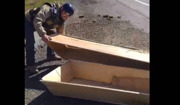 Паблик «Подслушано в Соль-Илецке» опубликовал видео, на котором двое мужчин несут деревянный пустой гроб. Они нашли его недалеко от трассы и вынесли на обочину. Гроб решили поставить по соседству с мобильным комплексом видеофиксации нарушений ПДД.